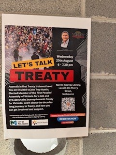 My engagement activities have included yarns with community members at meetings and community events. It is promising to witness firsthand how invested community members are in the Treaty process. Community members understand that we are in the early stages of developing a Treaty with the State Government in Victoria, but they are eager to see the detail of what a Treaty will look like.