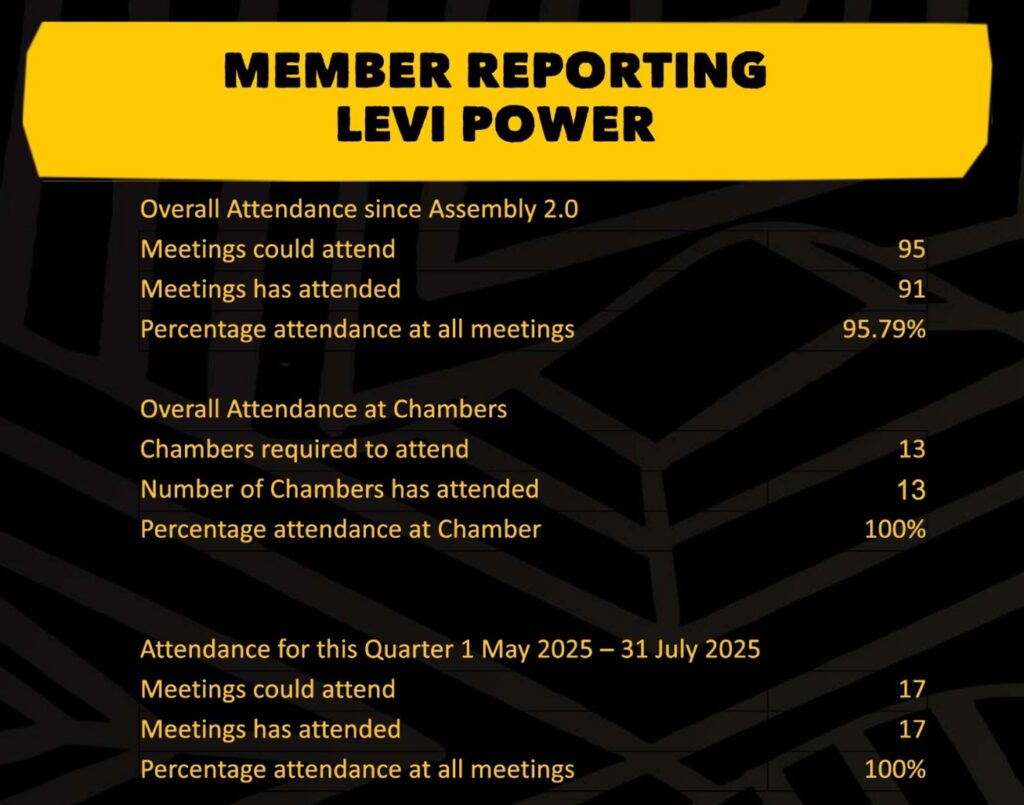 As always, guidance and feedback from our community who elect us is crucial. The yarns I have had with groups or individuals over the past few months have me feeling inspired and drives me to make sure we are having the right conversations as an Assembly.