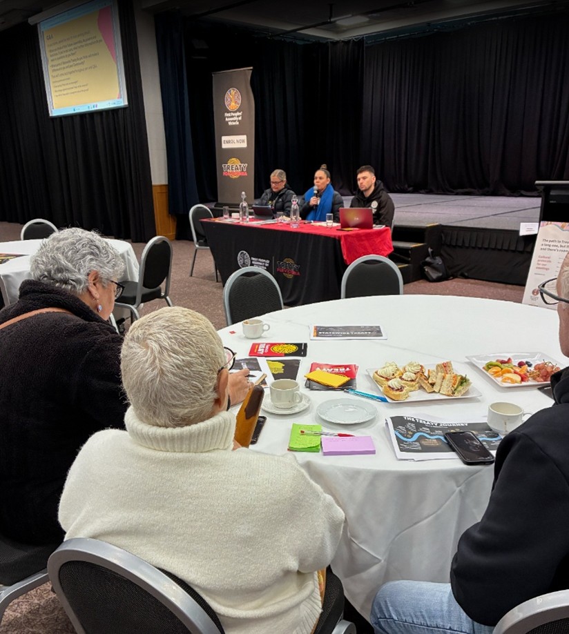 Following on from our Shepparton forum, we held forums in Wodonga and Echuca/Moama which were both filled with many great yarns. There has been lots of interest in hearing what the specifics are as part of treaty and what it will look like. So, it was great to share some of the assembly’s ideas which will make up what we call the Treaty negotiation brief. This brief outlines our key priorities which have been guided by the community as we lead into negotiations. Thanks to everyone who took the time to come out and yarn.